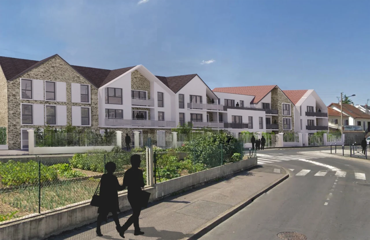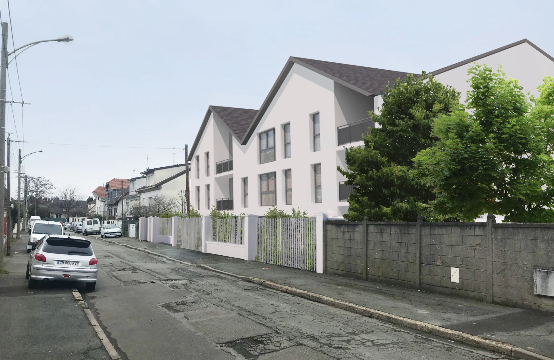 Implantée au cœur d’un îlot pavillonnaire composé de vastes maisons, cette opération prend soin de préserver le caractère paisible du quartier. Pour ne pas en altérer l’esprit, la conception s’est orientée vers un front urbain évoquant de grandes maisons de ville, alternant toitures à deux pans et toitures terrasses.