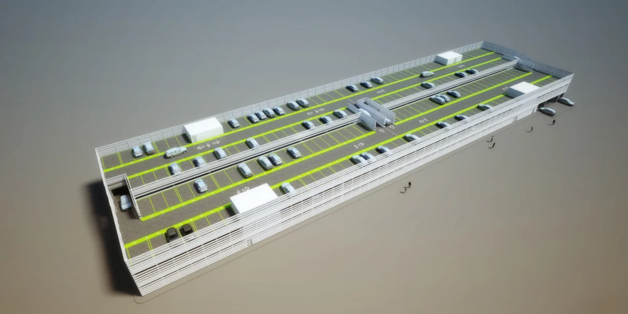 A fin de pallier aux problèmes de stationnement de la zone aéroportuaire, ADAT a décidé de mutualiser ses stationnements en développant un ensemble immobilier. De structure simple, la particularité de ce parking silo est de travailler une façade en glissière autoroutière. Entre ombre et lumière, ce principe offre une silhouette dynamique et contemporaine.