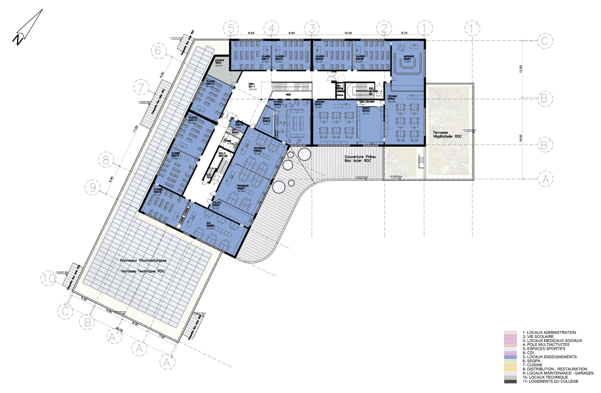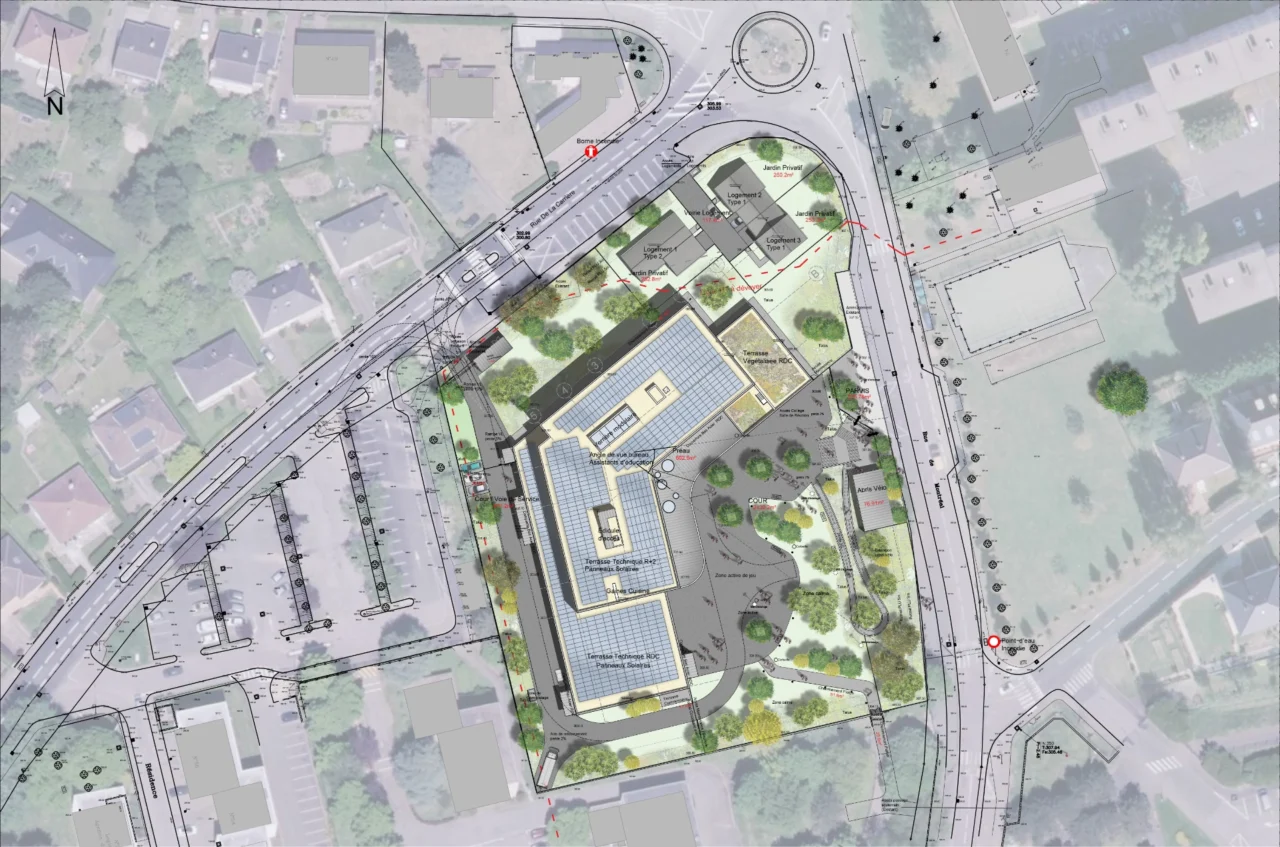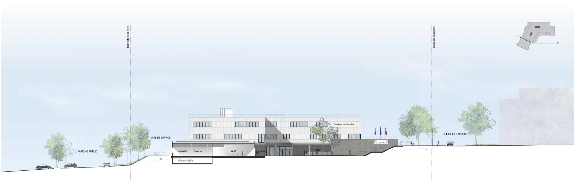 En partenariat avec l’Atelier Malisan, le projet consiste en la construction d’un collège BEPOS sur l’ancien site du lycée professionnel Valentin Metzinger. Ce chantier à fort enjeu économique a nécessité une approche budgétaire fine en amont de toute décision architecturale, avec des objectifs environnementaux ambitieux, bien au-delà des normes en vigueur, et une adaptation à une topographie marquée.