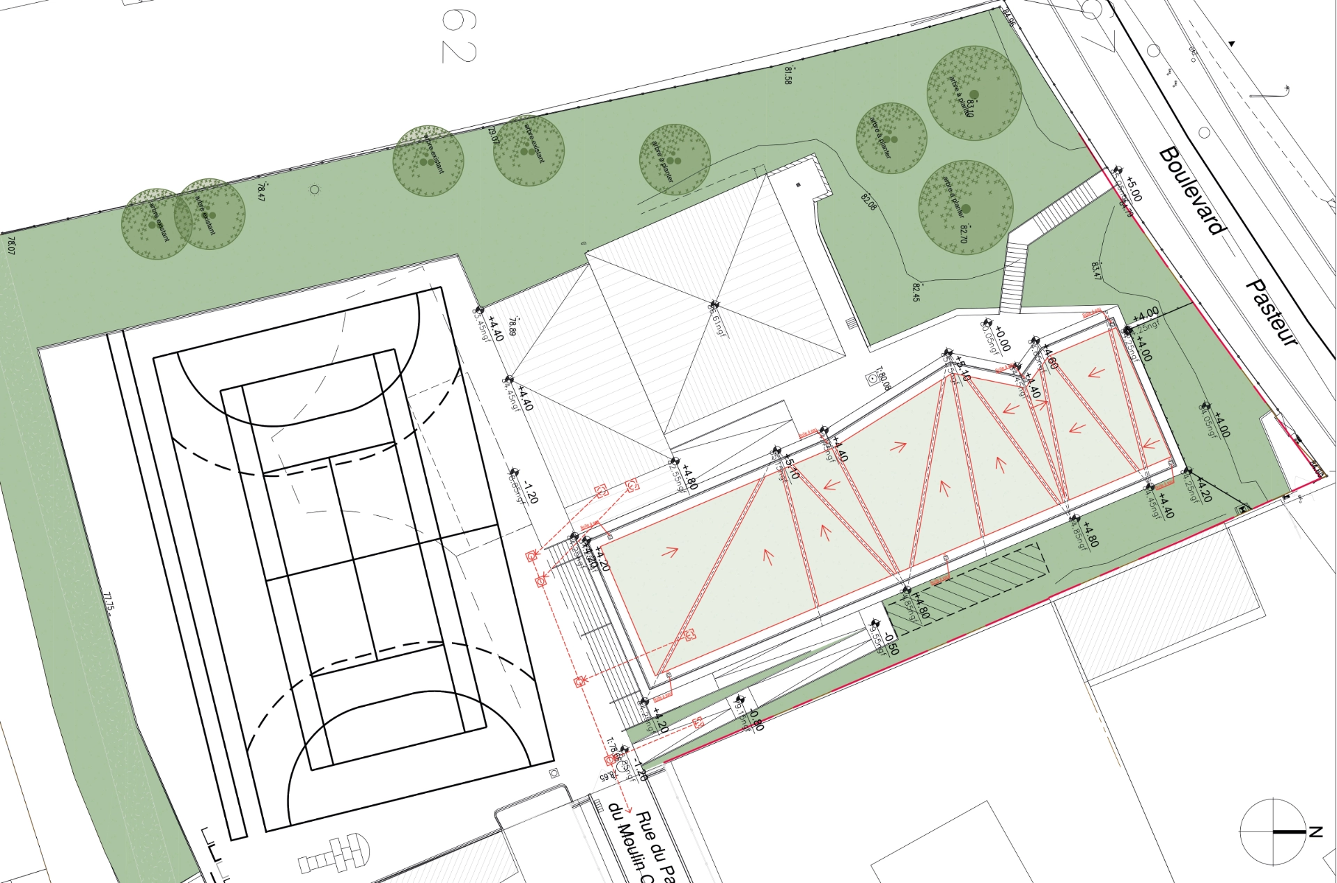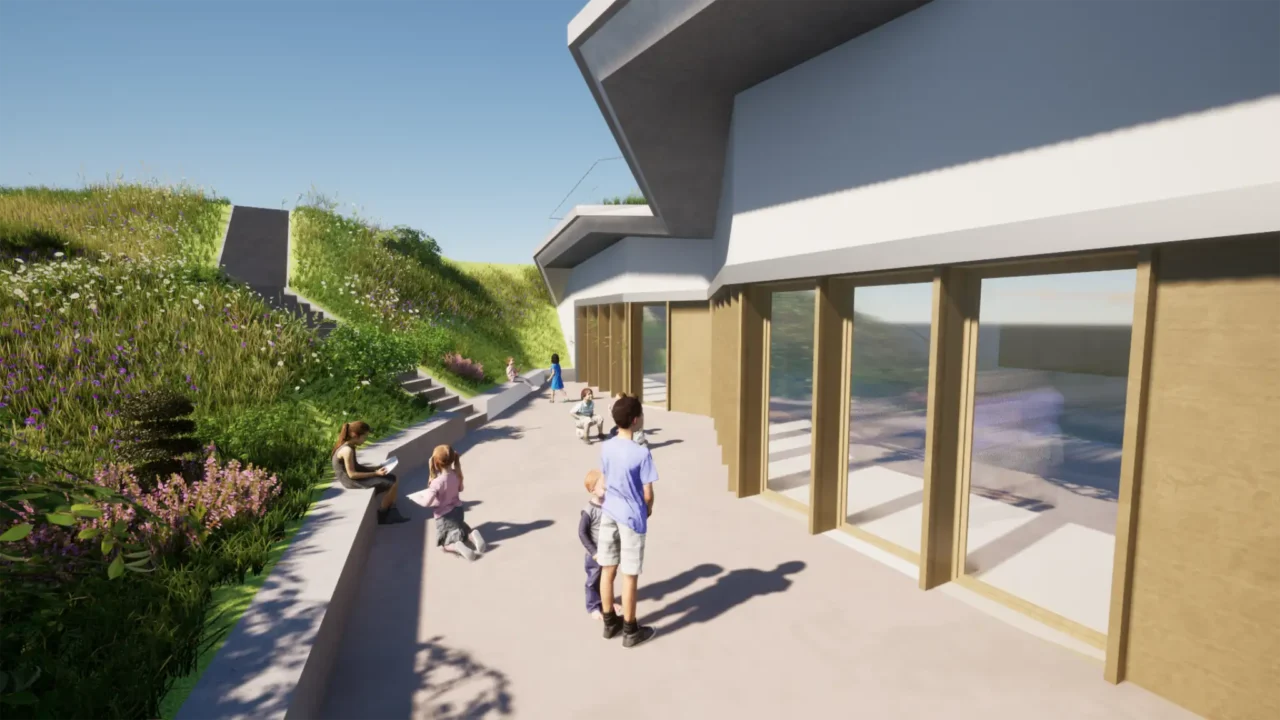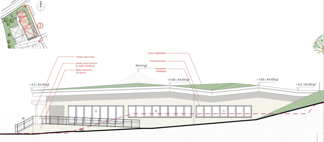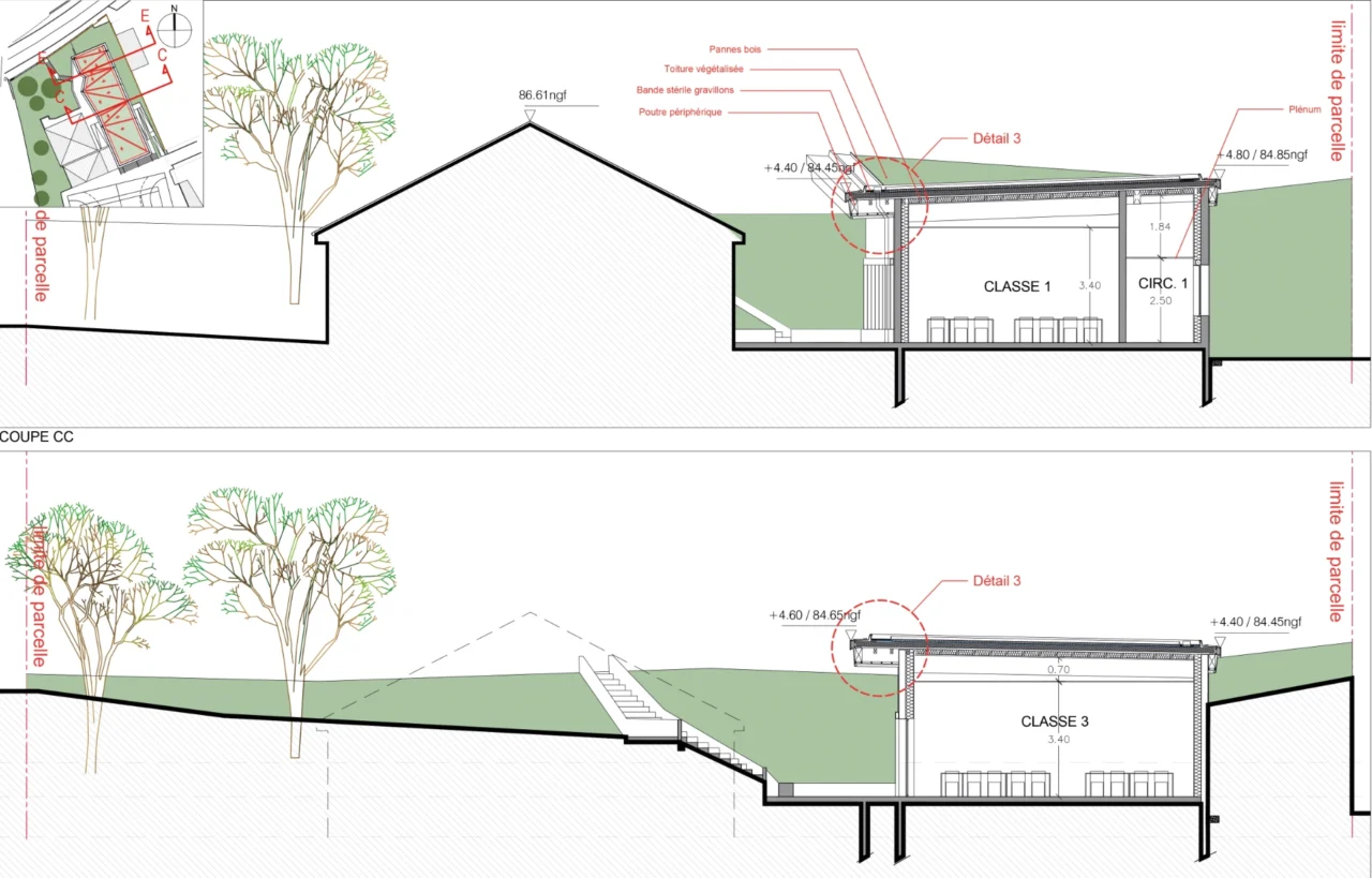 Le projet garantit une accessibilité fluide pour tous les élèves, malgré les dénivelés, et maintient une connexion directe avec la cour, le plateau sportif et la demi-pension.