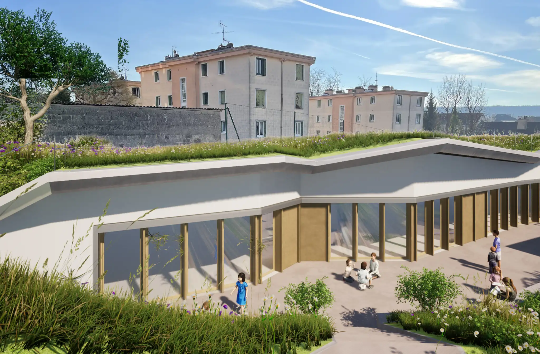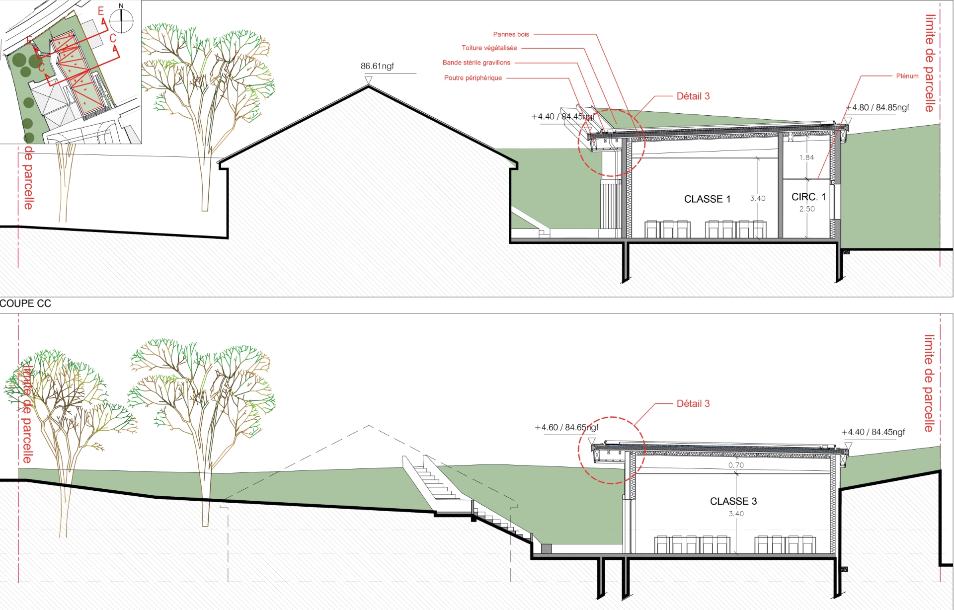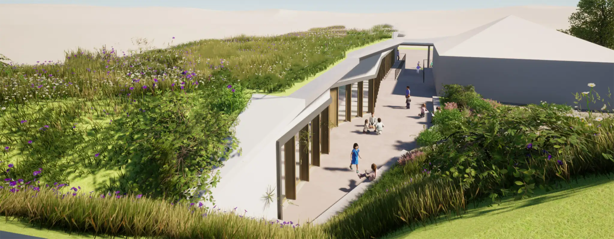 Le projet garantit une accessibilité fluide pour tous les élèves, malgré les dénivelés, et maintient une connexion directe avec la cour, le plateau sportif et la demi-pension.