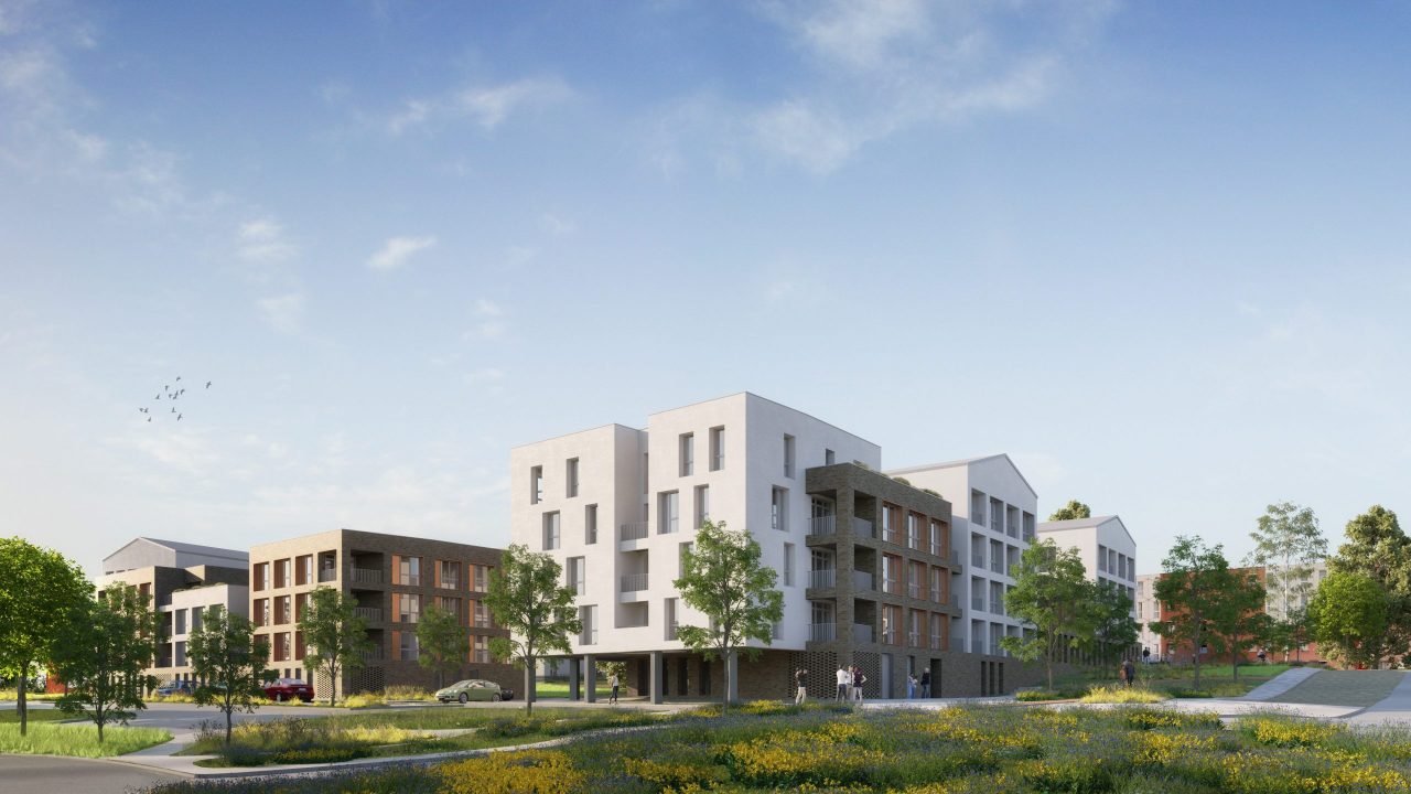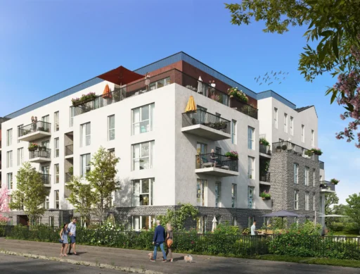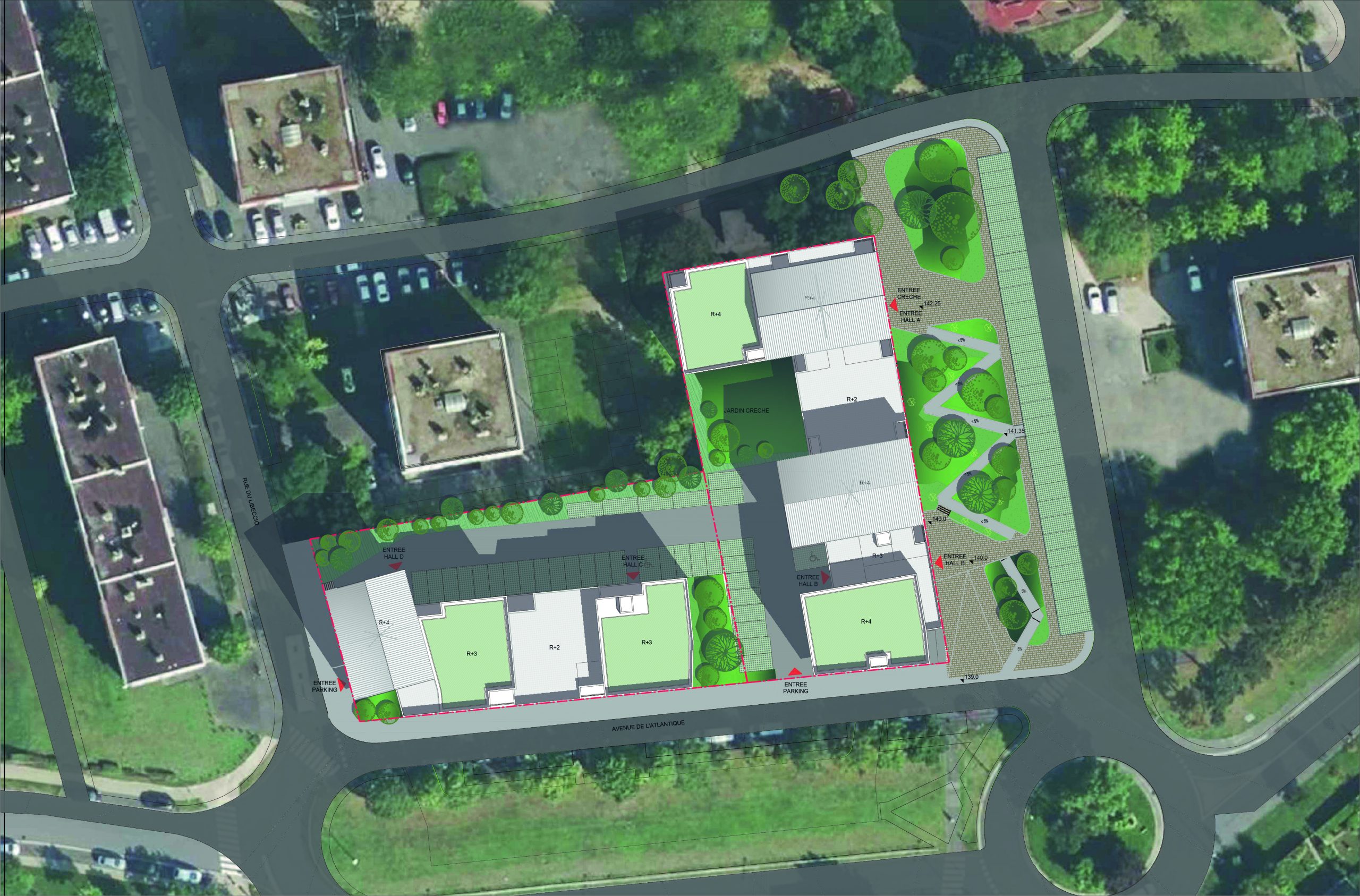 L’opération ANRU 2 – Guinettes à Étampes vise à requalifier un quartier ancien par la démolition d’immeubles obsolètes et la construction d’ensembles contemporains favorisant mixité sociale, performance écologique et continuité végétale de la « Ville-parc ». Le lot A, le plus important, occupe une position stratégique le long de l’avenue de l’Atlantique. Il restructure le site en créant un nouvel espace public reliant l’avenue au parc. Le projet remplace un ancien plot par un ensemble densifié mais ouvert, intégrant une crèche en lieu et place de commerces initialement prévus. Cette modification permet une meilleure cohérence d’usage et de circulation. La volumétrie, simplifiée et rythmée par jeux de briques, loggias et toitures végétalisées, exprime une écriture architecturale sobre et lumineuse. Les logements, variés du T1 au T5, bénéficient tous d’espaces extérieurs et de doubles orientations. Enfin, les aménagements extérieurs valorisent les continuités paysagères et la convivialité des espaces publics.