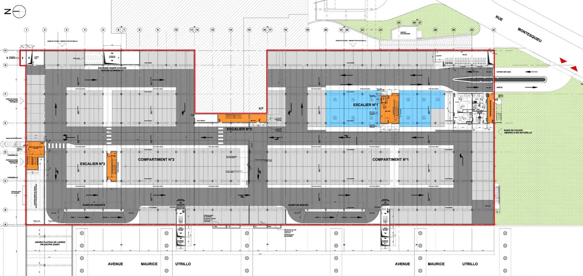 Intégré dans un environnement urbain dense, le parking Montesquieu constitue désormais un élément clé de l’aménagement du quartier, contribuant à l’amélioration de la qualité de vie des habitants et des usagers.