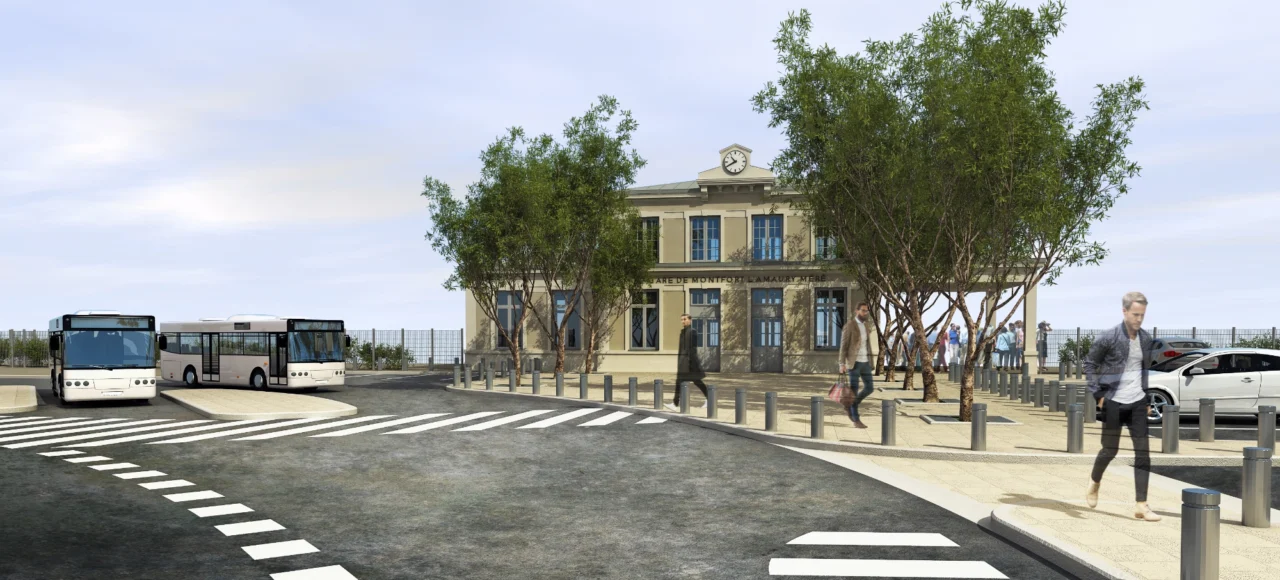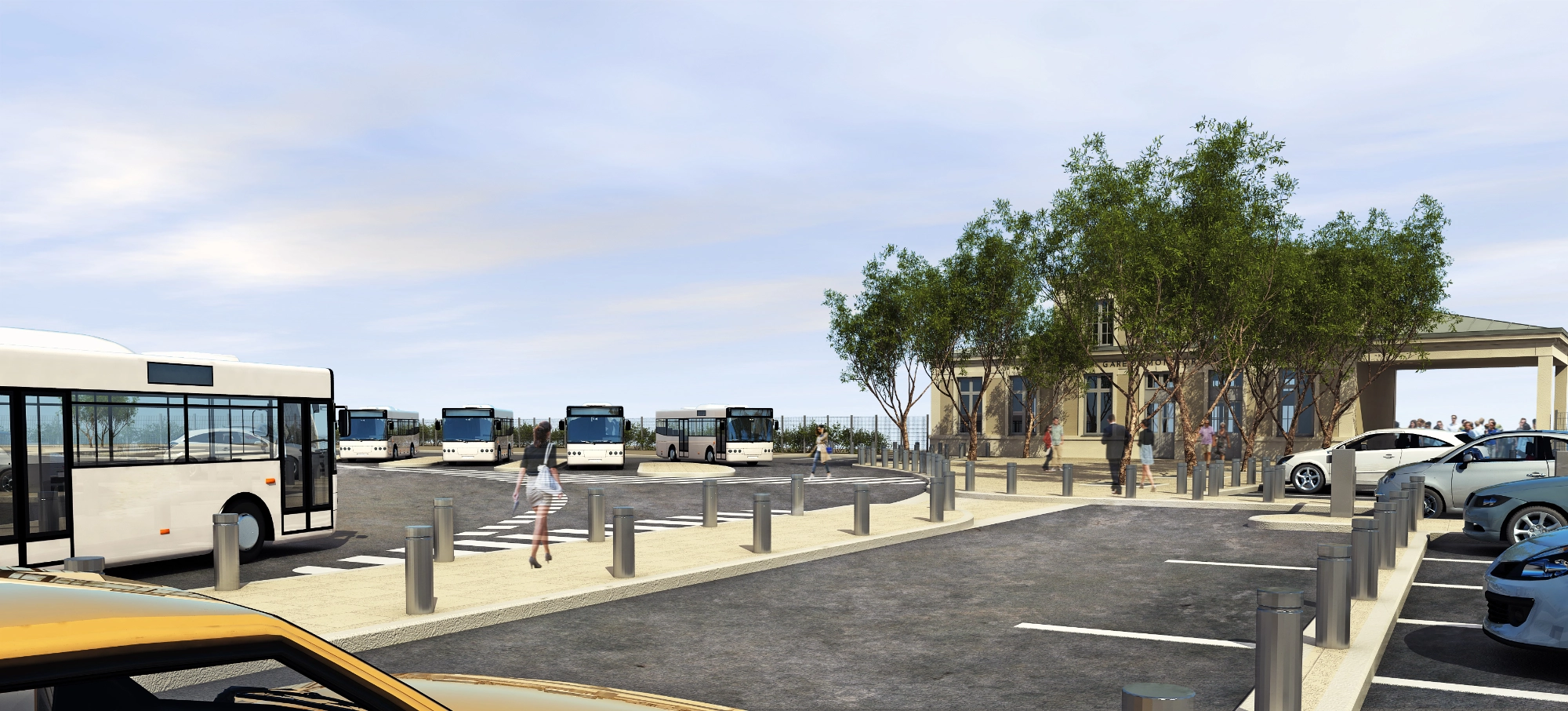Notre proposition comprenait la création d’un parvis arboré pour apporter une identité et une lisibilité nouvelle à cet espace. L’aménagement a également permis d’améliorer la gestion des flux de circulation et de sécuriser les cheminements piétons.